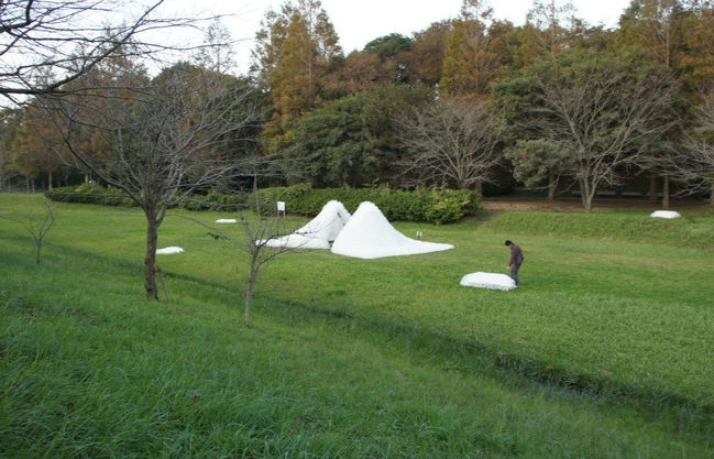 At the Abiko International Outdoor Art Exhibition, I proposed a shelter made from 10,000 recycled plastic bottles. The project aimed to give a new purpose to plastic bottles, which are often seen as non-combustible waste. By thoroughly cleaning the bottles, I opened their caps, placed fabric between the bottle neck and the cap, and then resealed them to create a secure connection between each bottle. Repeating this process formed an arching dome, following the natural curve of the bottles.